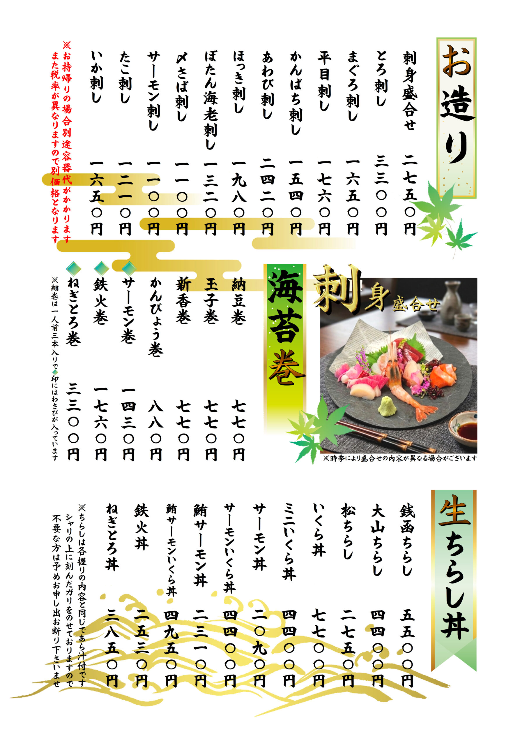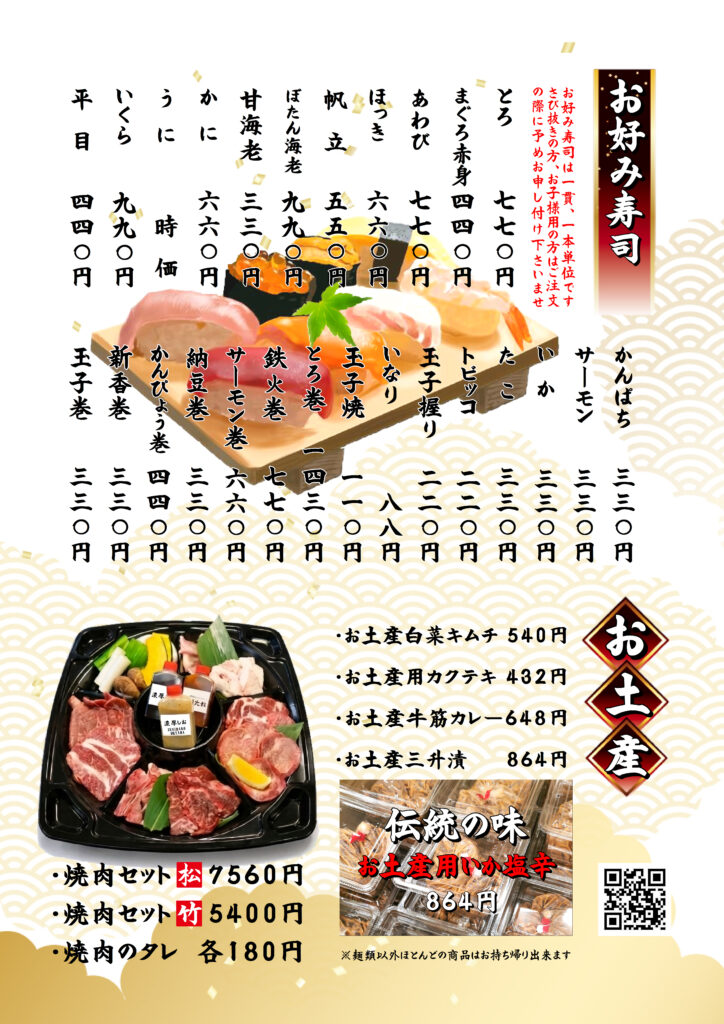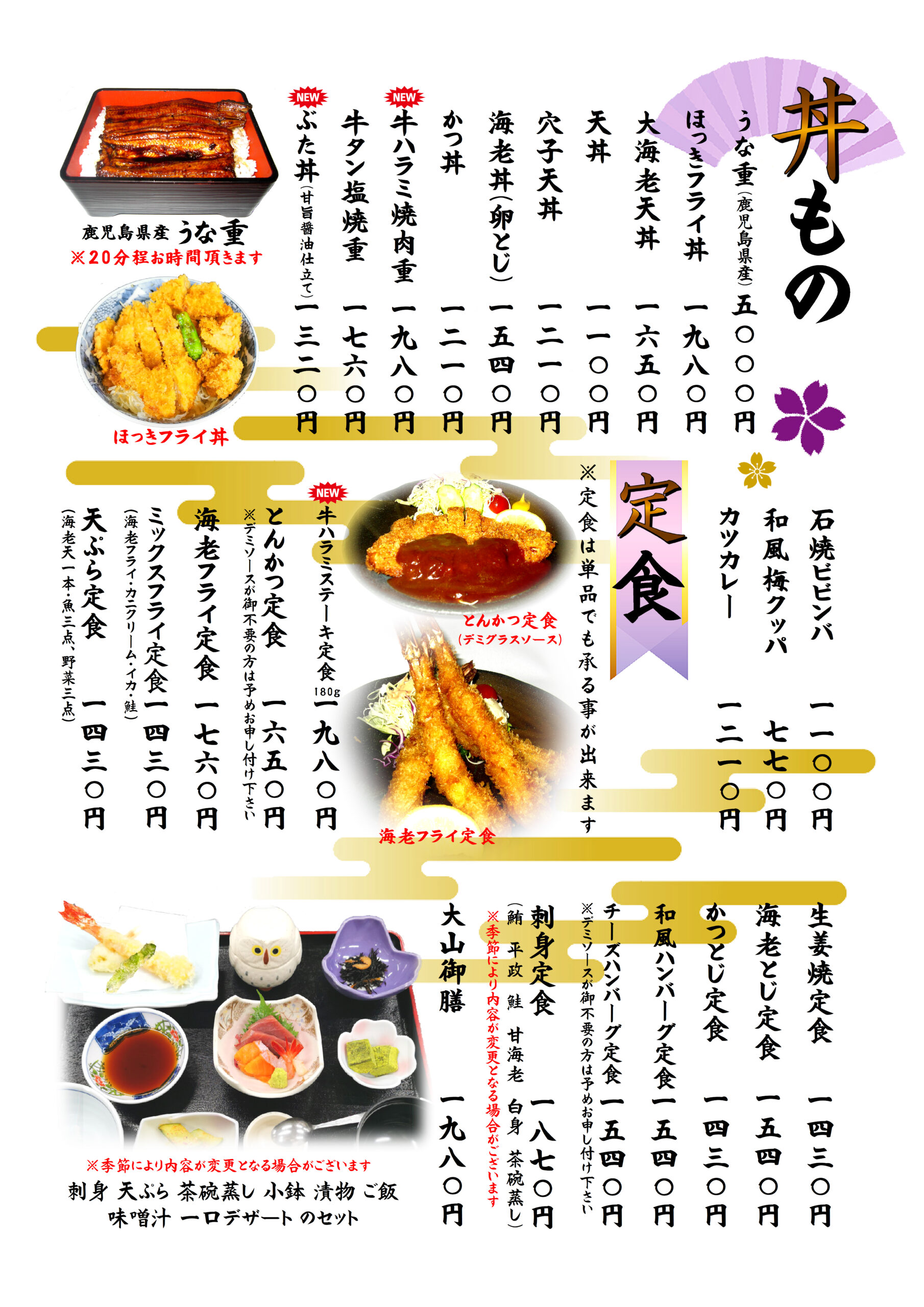 こちらは和食のグランドメニューのご紹介です。この他にも季節のおすすめメニューがございます。